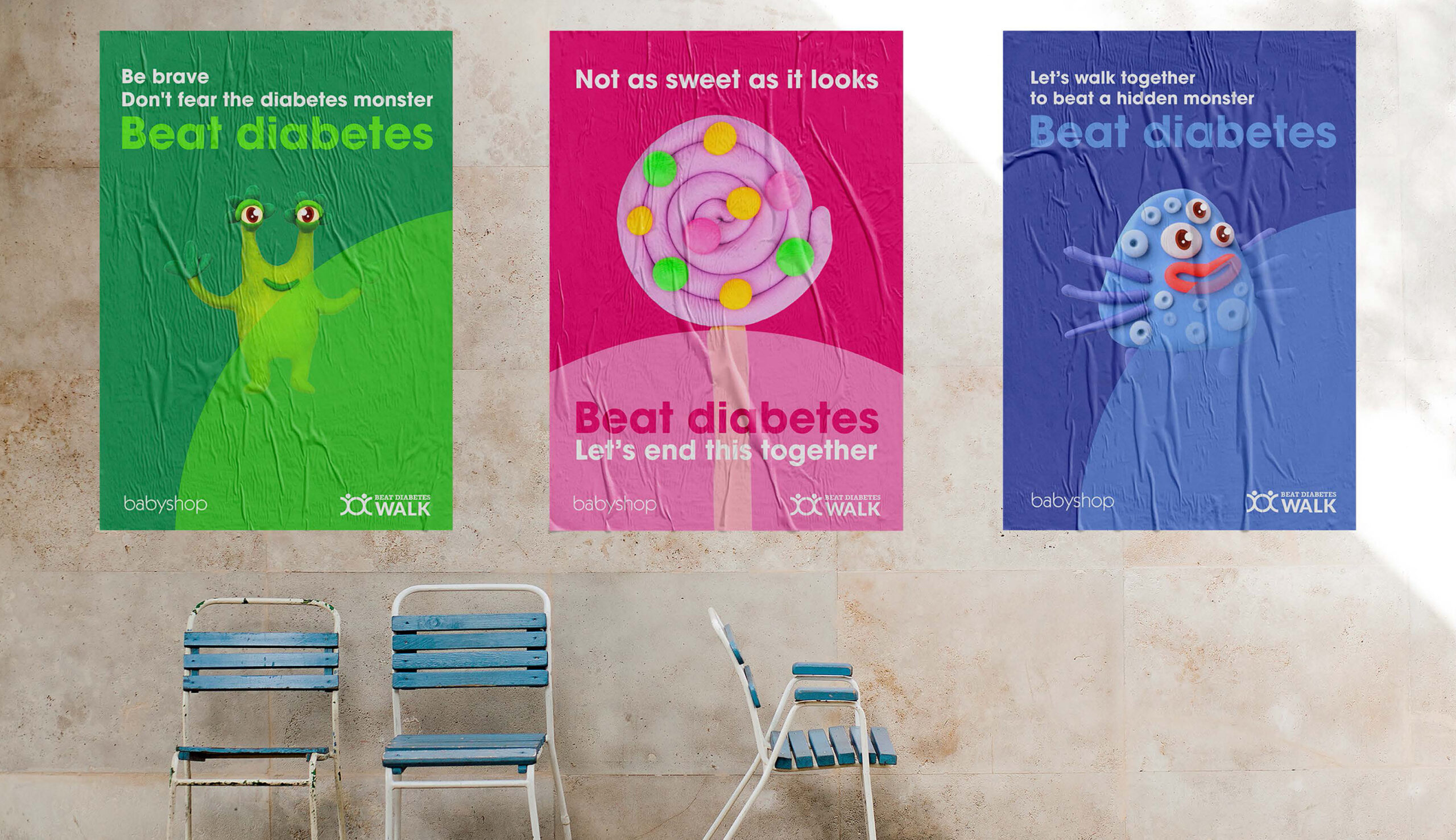 A series of designs of A3 posters, using vibrant colours and strong visual to inform, engage and bring a positive message inspiring people to live a healthier life.